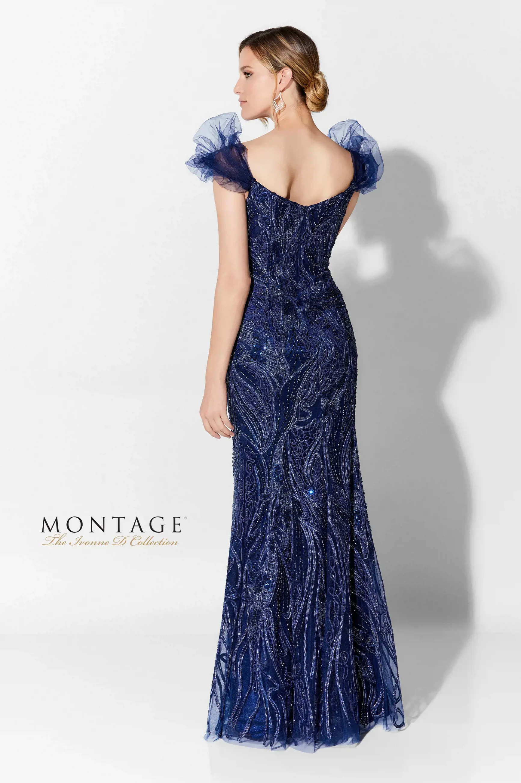 This mesmerizing fit and flare dress gets its unique texture from a swirl-like pattern of shimmering beadwork and touches of metallic ribbon. A sweetheart neckline and puffed, illusion cap sleeves elevate this gown with an elegantly chic appeal, making it the perfect choice for the fashion-forward mother of the bride.