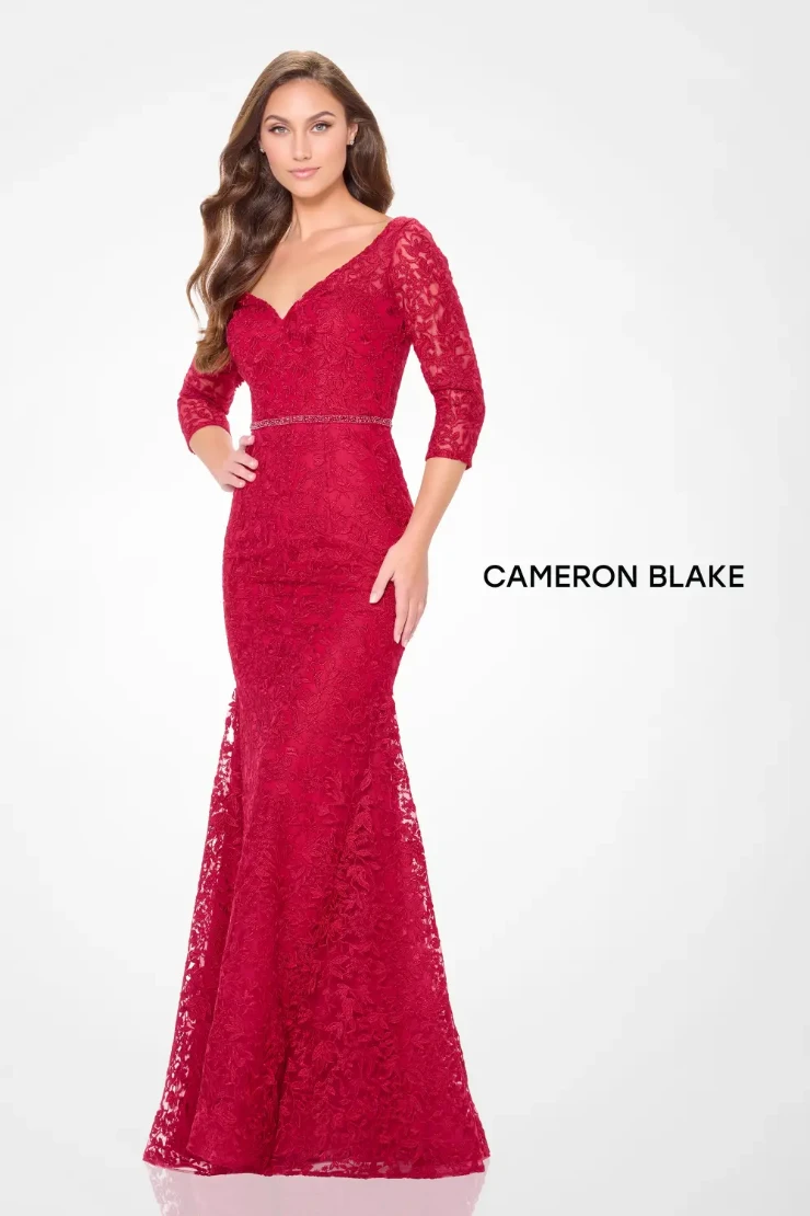 Radiate sophistication in this stunning allover lace mermaid gown. The elegant V-neckline and sleeveless cut are complemented by a delicate beaded belt, defining the waist for a flattering fit. Separate three-quarter sleeves and a matching shawl complete this glamorous look.