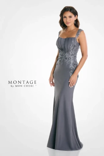 Step out in elegance with this stunning A-line gown. Crafted from soft satin, this breathtaking style is ultra-flattering and comfortable. The charming off-the-shoulder neckline highlights the collarbone, while the delicate floral detailing add a touch of romance. A matching shawl and detachable spaghetti straps complete this elegant mother-of-the-bride style.