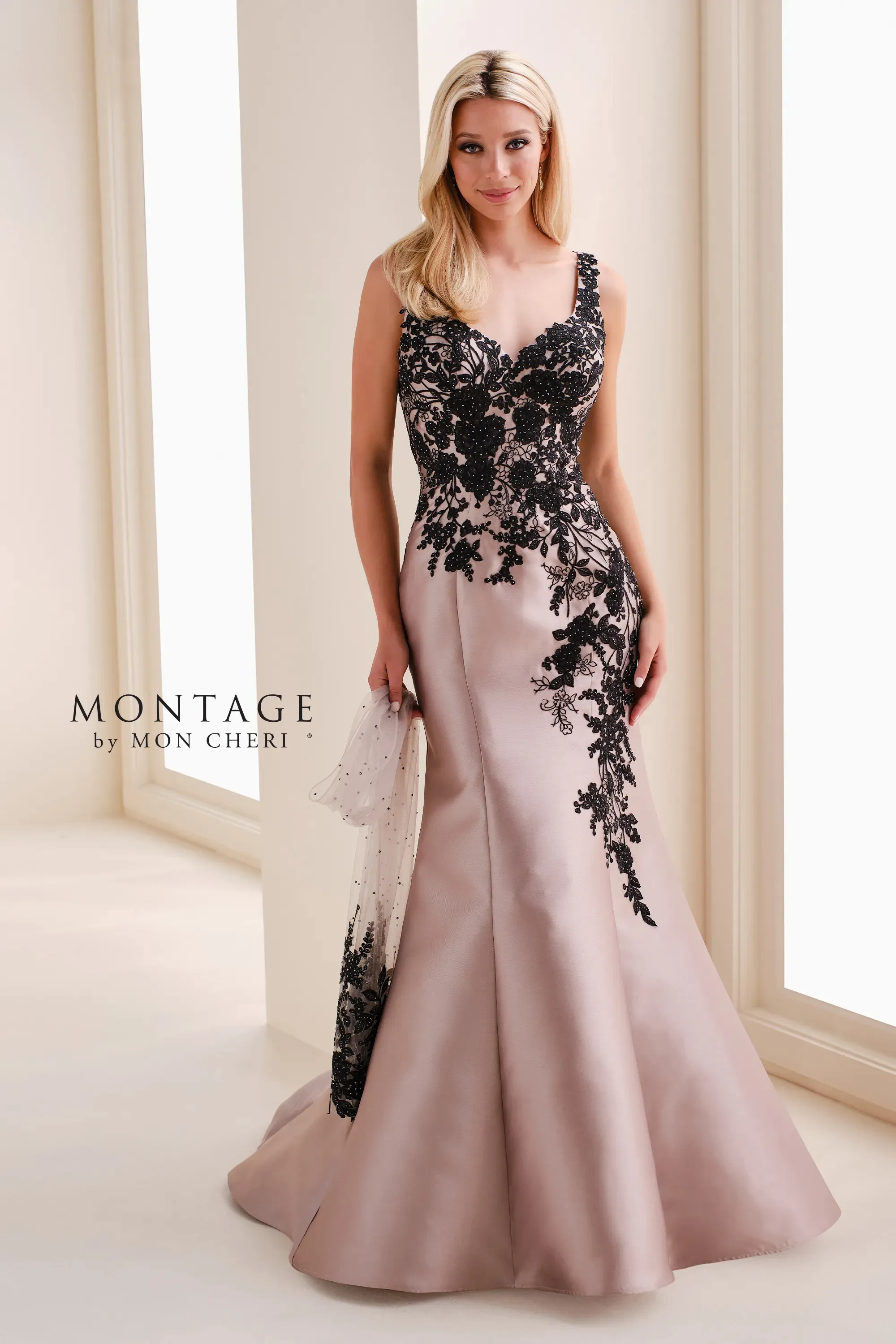 Fabric:Lace Applique, Mikado, Stone Accents