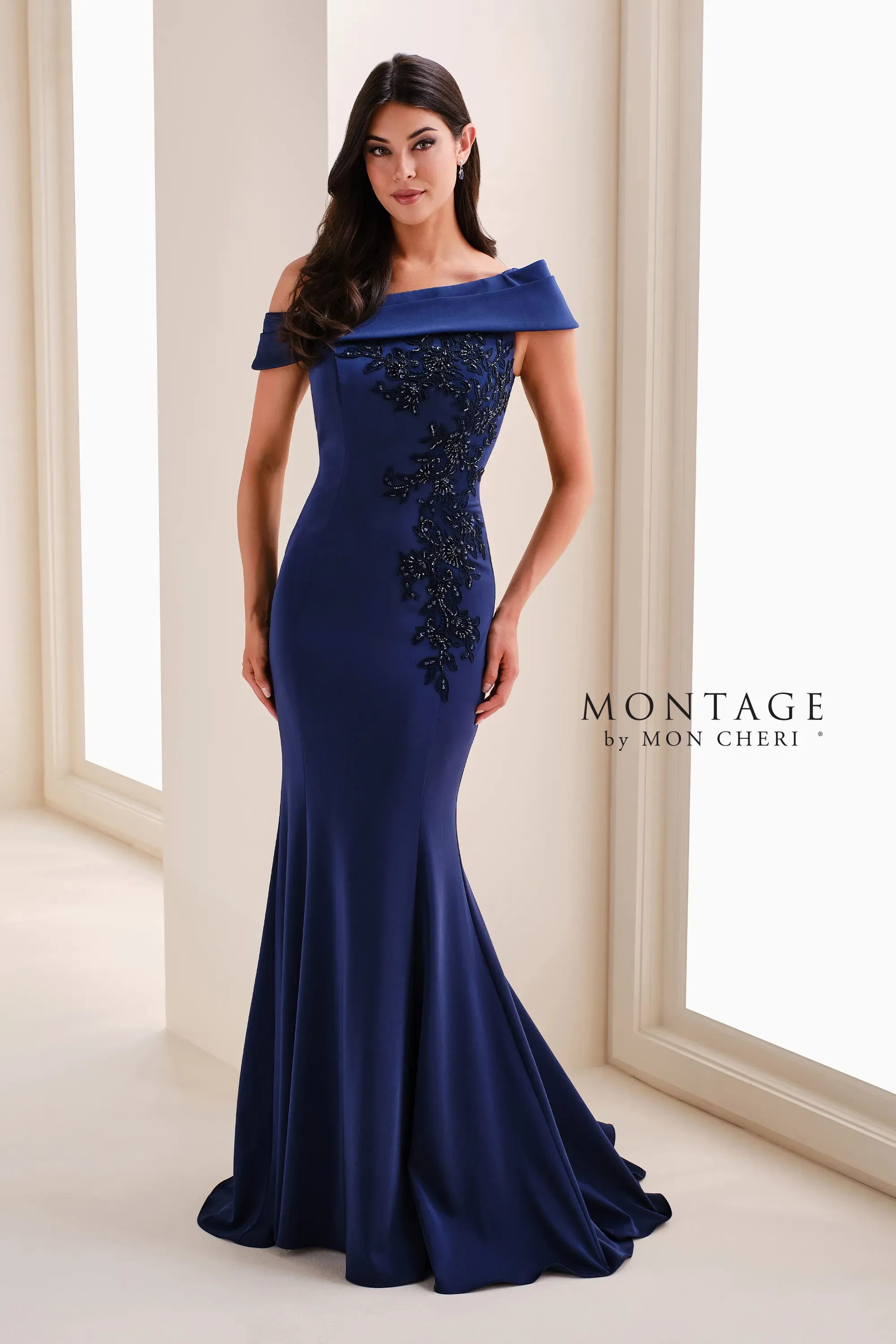 Crepe Satin Asymmetrical Off-the-Shoulder Mermaid Gown